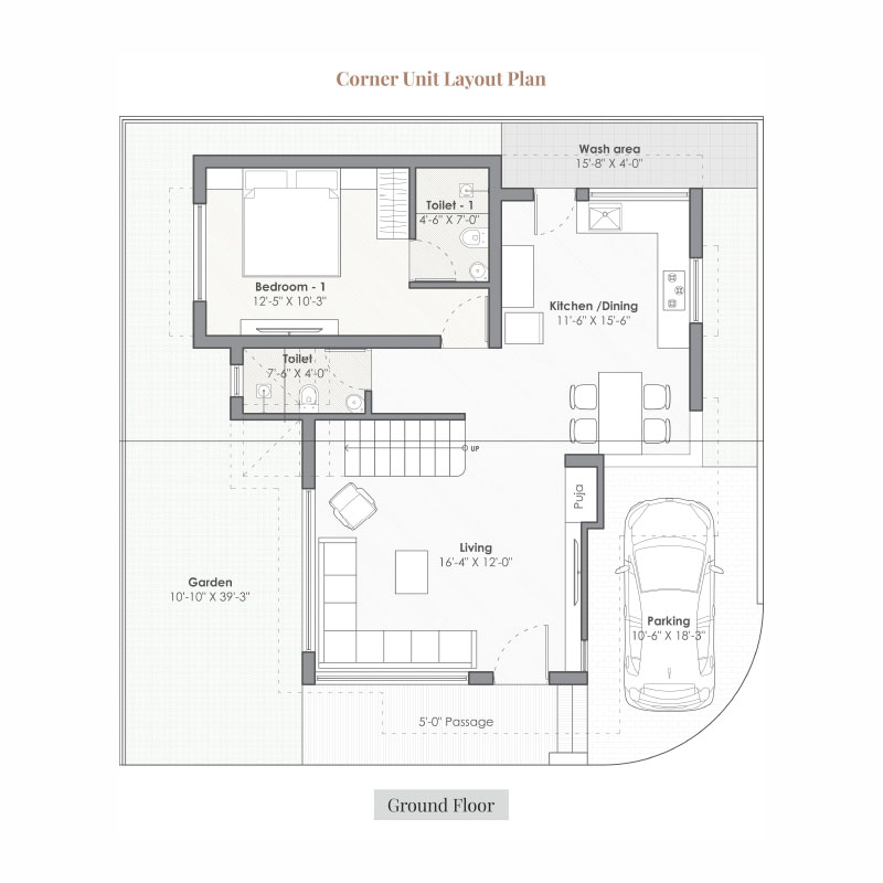 - Concealed plumbing with UPVC / CPVC pipe and leading brand of C.P. fittings & sanitary ware.