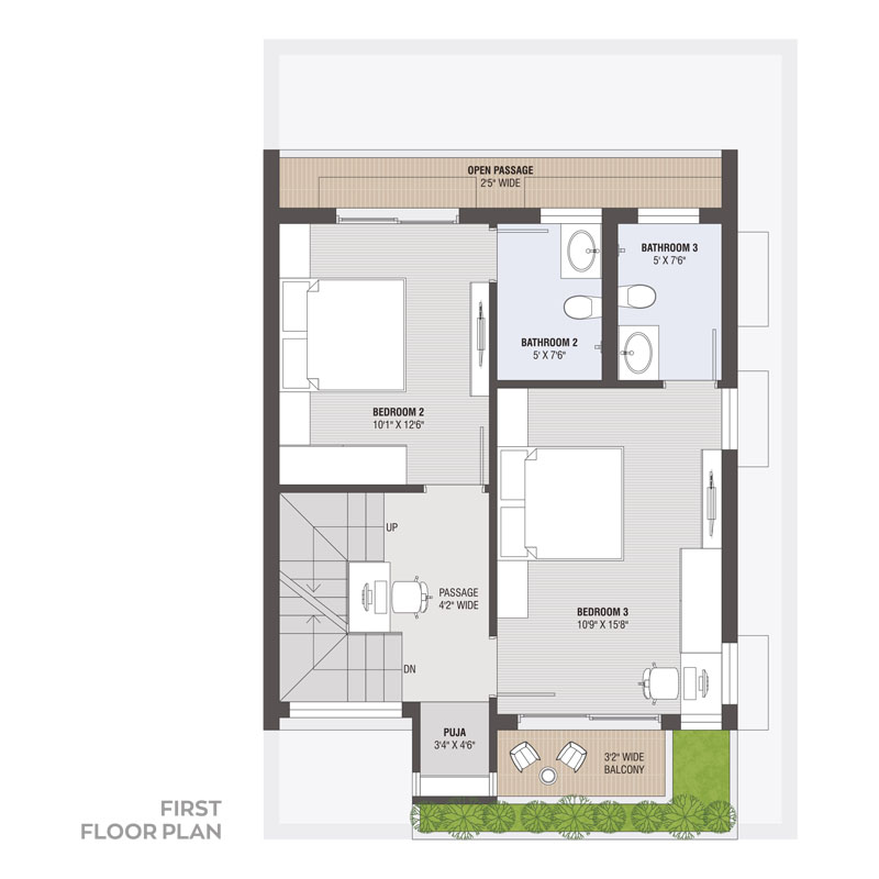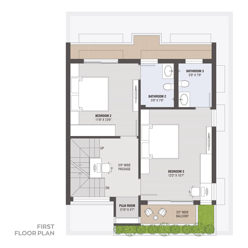 - Concealed plumbing with UPVC / CPVC pipe and leading brand of C.P. fittings & sanitary ware.